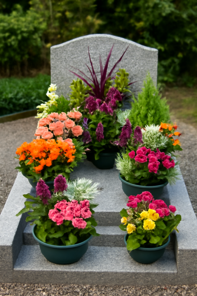 En complément de nos prestations de rénovation, vous pouvez faire appel à nos services pour le fleurissement et le nettoyage des tombes de vos proches disparus, afin de garder un lieu de recueillement propre et fleuri toute l’année.